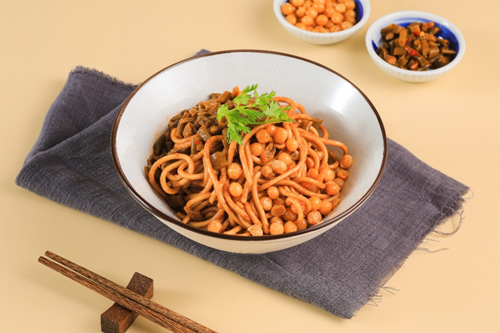 以芝麻醬和多種調料拌勻的勁道面條,口感濃郁,香氣四溢。